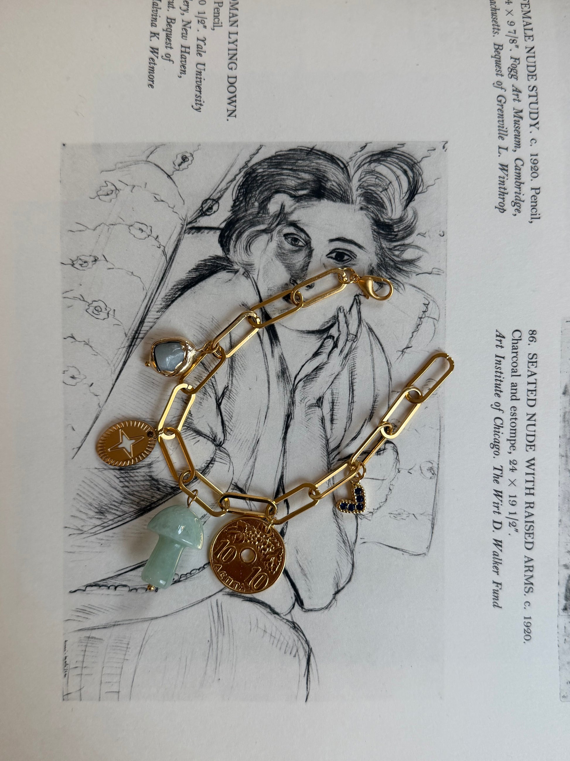 Leuke trendy schakel armband met verschillende en kleurrijke bedels. Deze handgemaakte armband is gemaakt uit stainless steel.